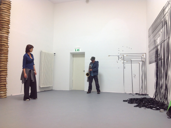 Die Ausstellungseröffnung wird musikalisch in Schwingungen versetzt durch Anna Mandel, Stimme und Andreas Krennerich, Saxophon.