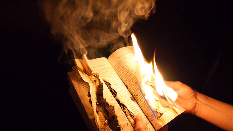 Standing here, we are in between what we can see and what has already been depicted, in between what we feel and what we understand of our environment. «Between two fires» suggests another reading of our times in regard to history. We are blind between acts of destruction (in particular the autodafé) and their consequences. Created especially for the Schauraum, this exhibition questions the role of the legible and the invisible in our society, it challenges notions of common space and consciousness – and therefore the autonomy of individual acts inside a system. Autodafé is a kind of typography inspired by the empty space around the letters. If people burn books, they burn letters. If they burn letters, how can the residues be an expression? The sentences (confer. at the other side) aim to focus on sources and consequences of the world surrounding us by stressing the negative space. In the video Sauter par dessus son ombre, the artist burns a book. The fire gives light so she can read but at the same time, she can only read a small portion of each page. Something from outside forces her to read fragments – the text is an incomplete version. The book is «Eichmann in Jerusalem». Hannah Arendt proposes to consider a judgment of the Nazi- administrative Eichmann, not in a moral terms, but in regard to the environment the acts have been committed in. In everyday life, an act, however small and ordinary it seems to be, has consequences, and will cause a chain of other acts and consequences. Drawing is at the core of her practice. Marianne Mispelaëre observes and produces simple, concise and precise gestures, inspired by actual and social acts. Her work process focuses on the conditions of the appearances, their stakes and consequences. Her research explores social relations and interactions, languages and communication systems. She is interested in the first appearance of a personal or collective impulse in public space.