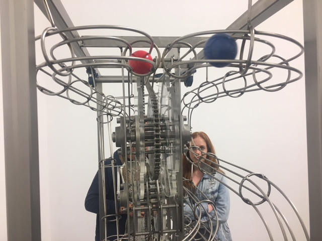 Ein wenig wird der Schauraum auch zum Spielfeld, wenn Hanns-Martin Wagner Kugelbahnen und kinetische Objekte ausstellt. Eine Bespielung des Raumes findet nicht nur im übertragenen Sinne statt: die Objekte selber laden zum Spiel ein!